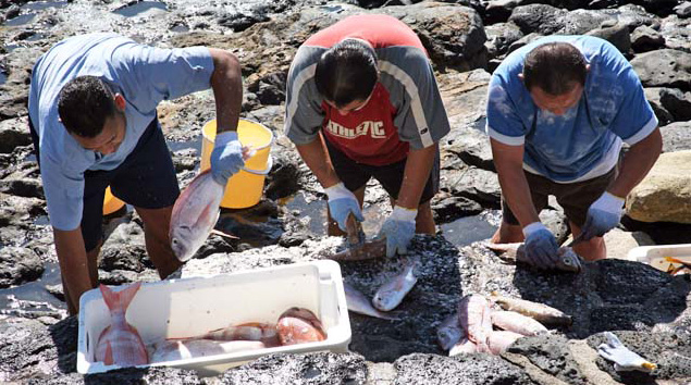 Above: local fishermen cleaning some of the mornings catch for "Pedros" restaurant, Playa Blanca